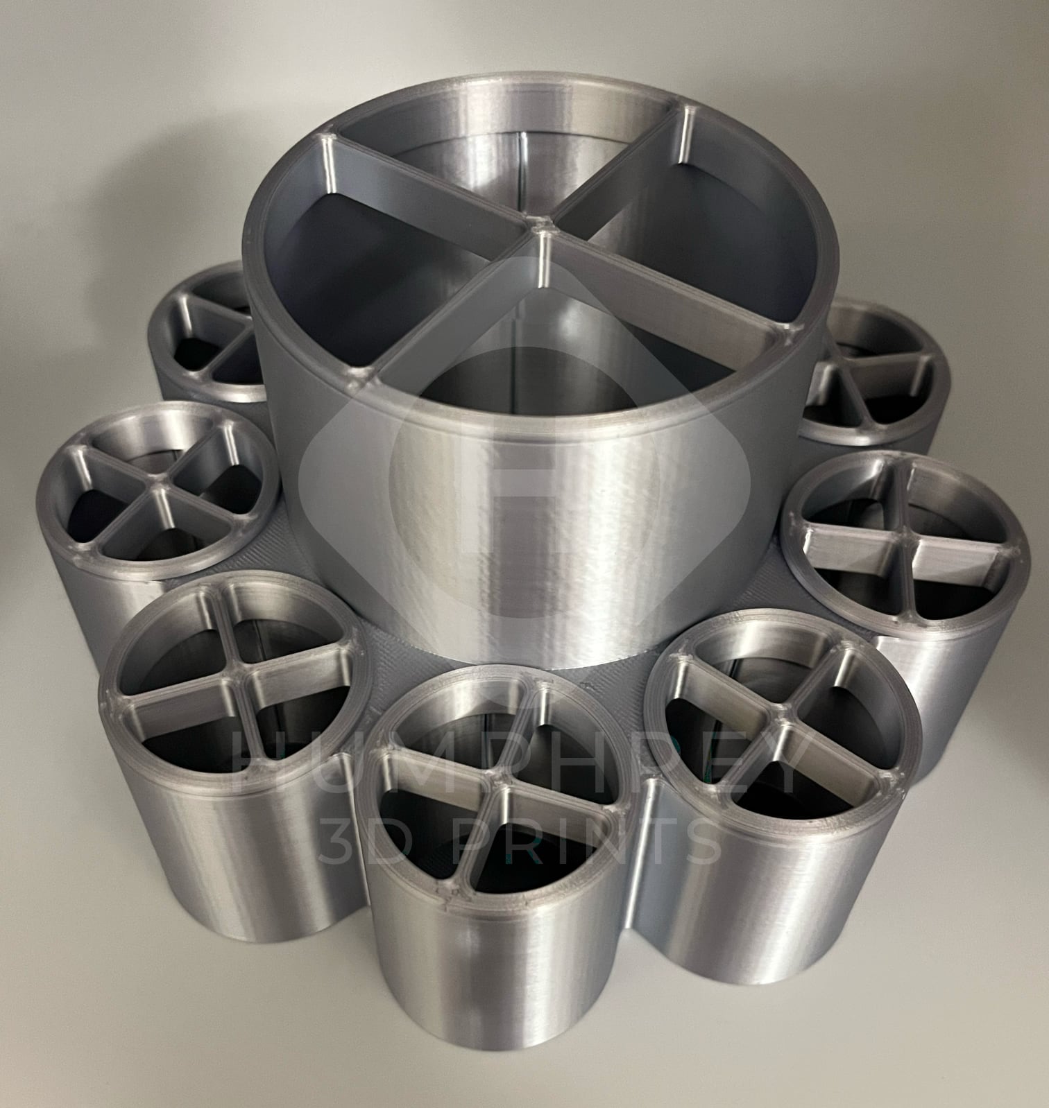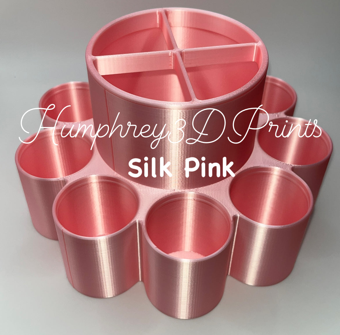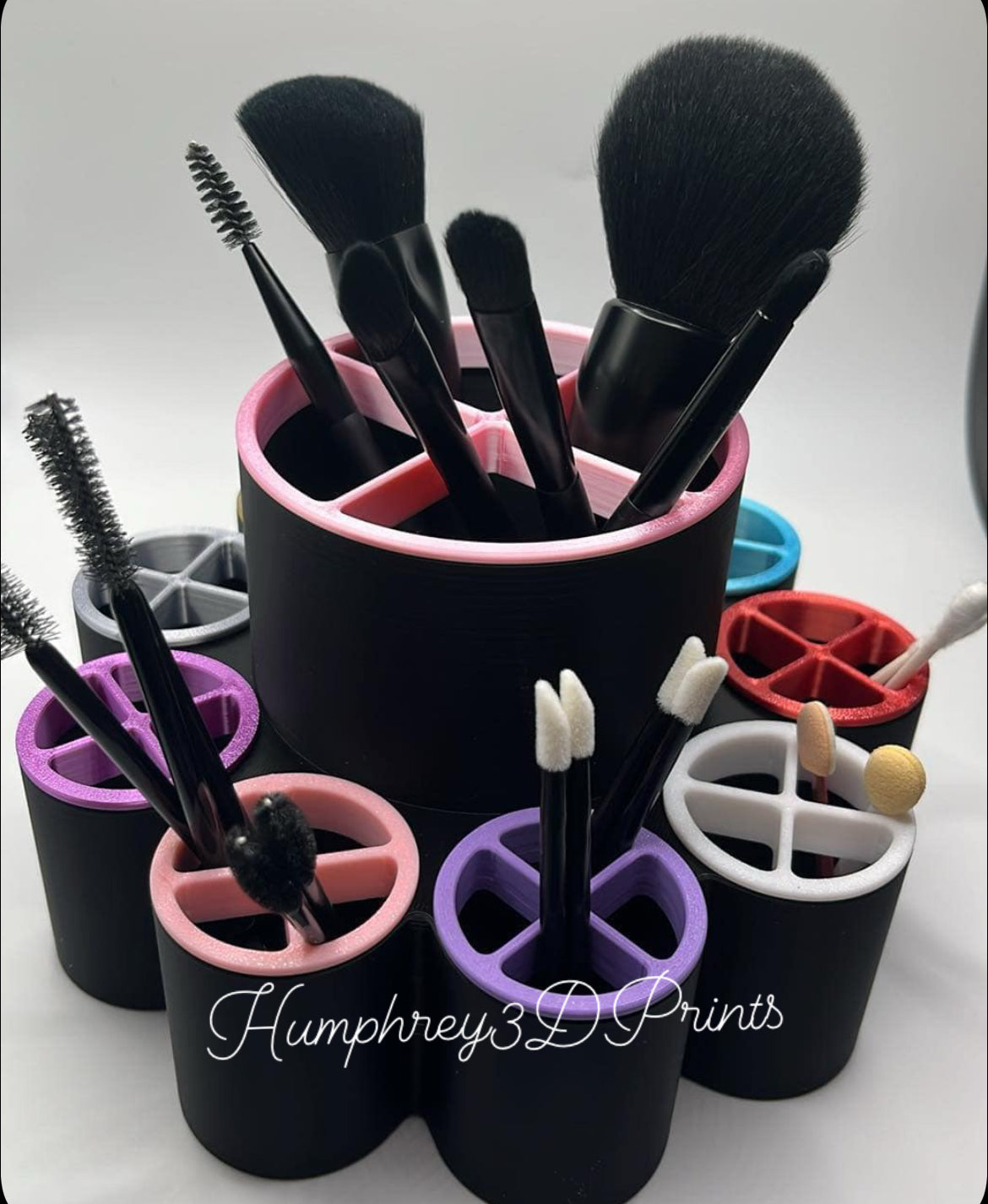 El cilindro principal está diseñado para guardar tus pinceles, mientras que los nueve cilindros más pequeños adjuntos son perfectos para guardar aplicadores con punta de esponja, cepillos de rímel, bastoncillos de algodón y aplicadores con punta de aguja. Este diseño versátil garantiza que todas tus herramientas estén a tu alcance, lo que hace que tus fiestas de glamour sean más eficientes y divertidas.