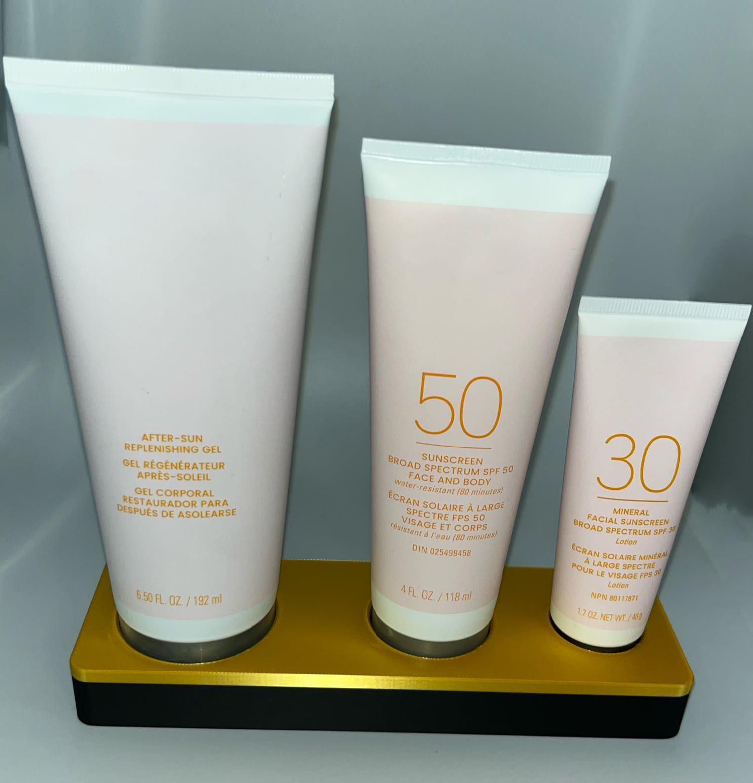 Mineral Facial SPF 30, Face & Body Sunscreen SPF 50, After Sun Replenishing Gel.